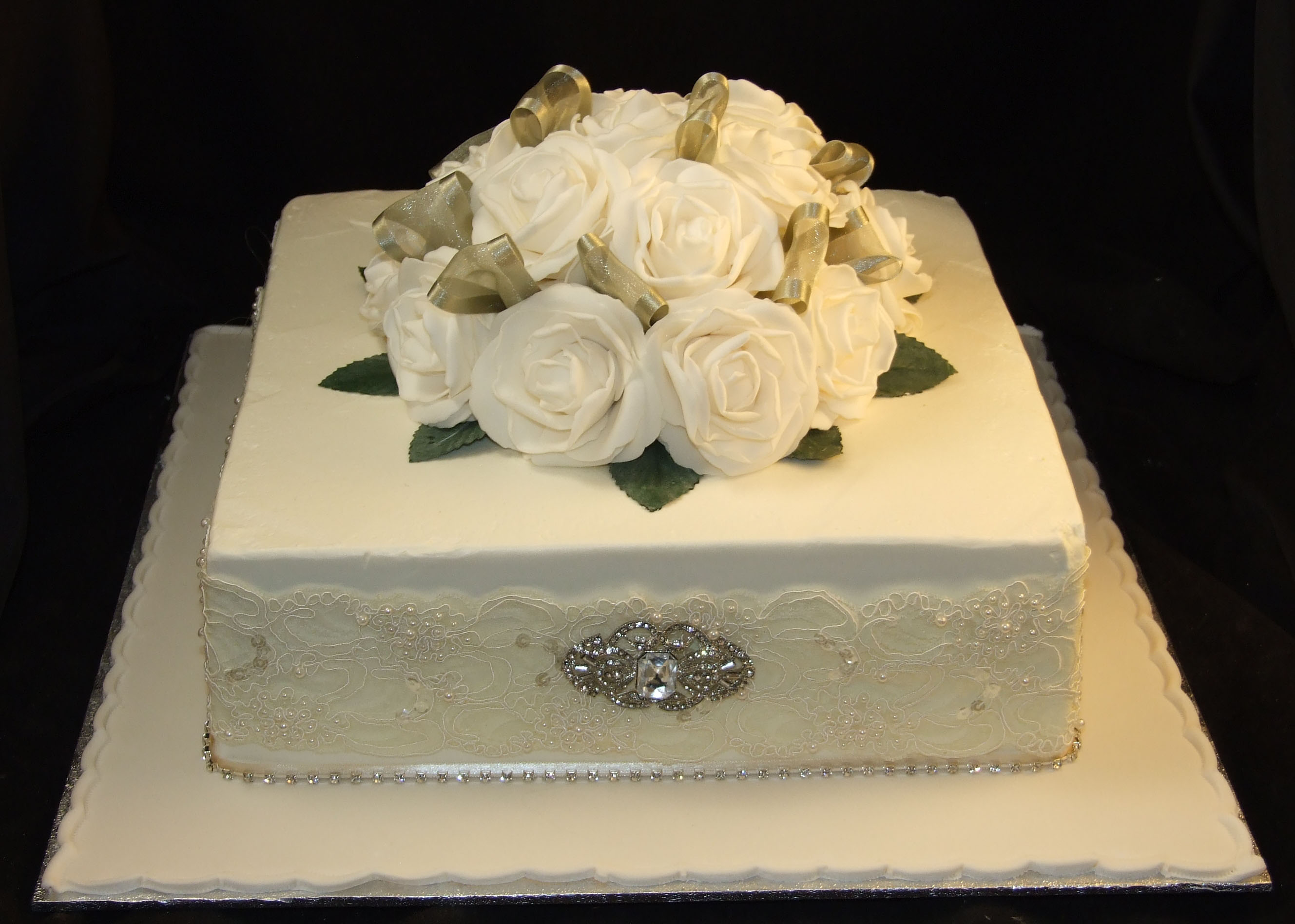 Anniversary - White Roses & Lace Bead Trim